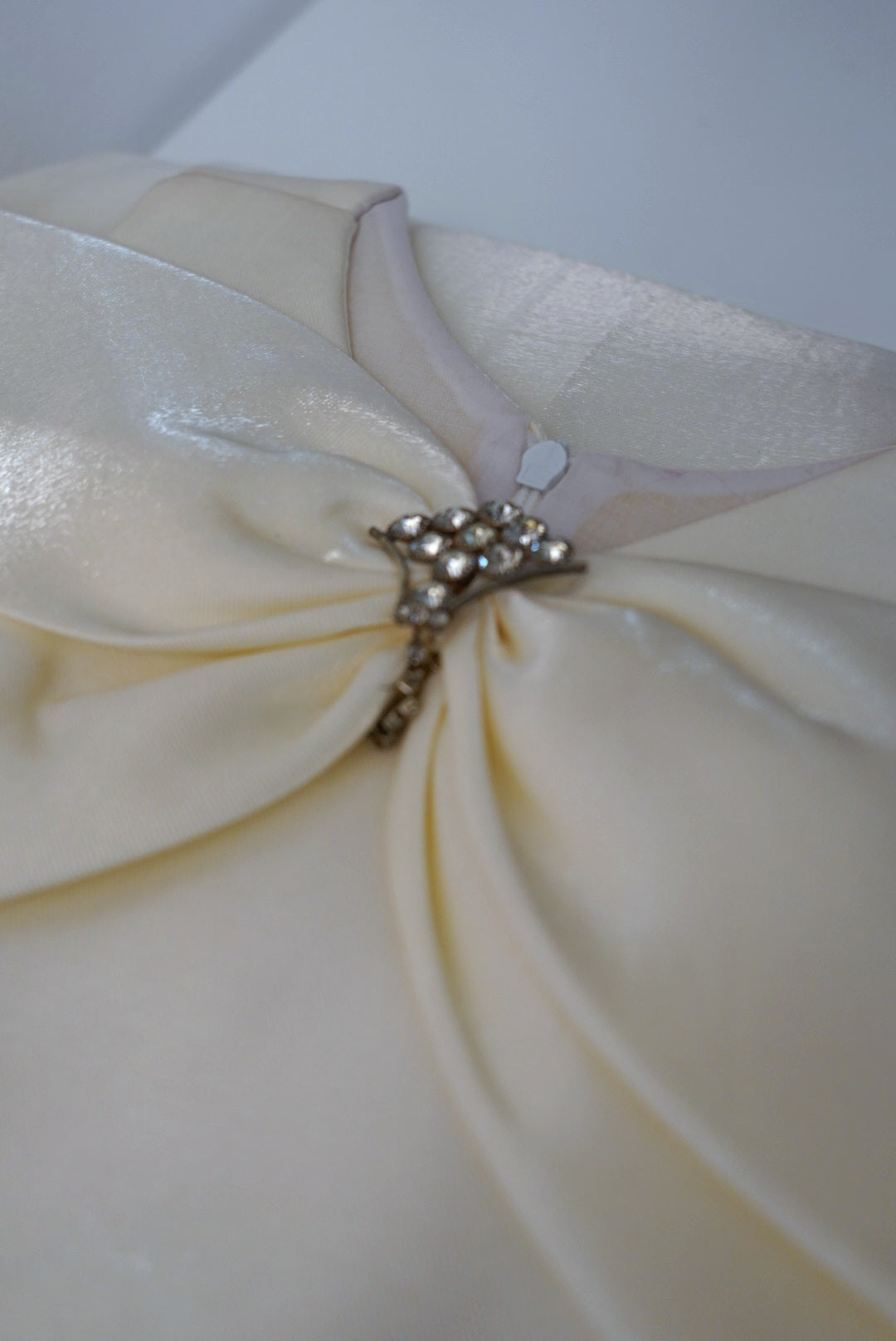 This lovely girls dress is perfect for special occasions! Made from soft, shimmering ivory satin, it features a large, elegant bow on the chest adorned with a sparkling crystal accent. The waistline is highlighted with a glittering silver belt for a touch of glamour. The full pleated skirt adds volume and grace, making it ideal for weddings, parties, or festive celebrations.