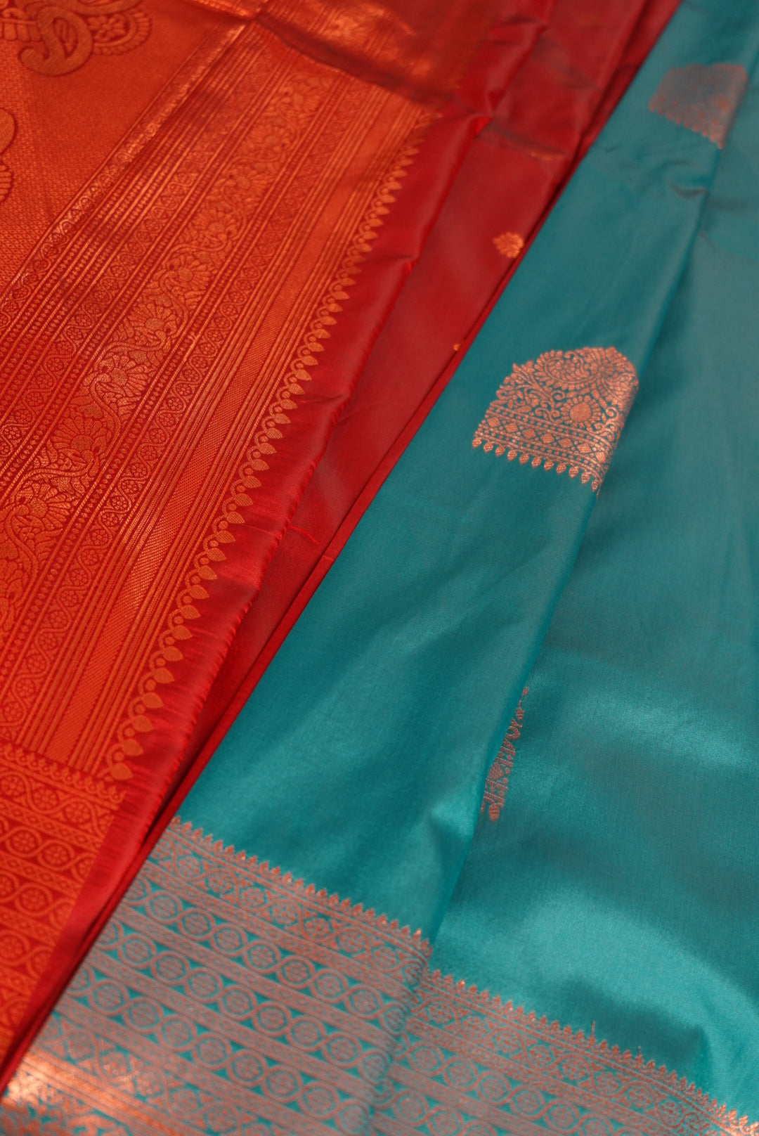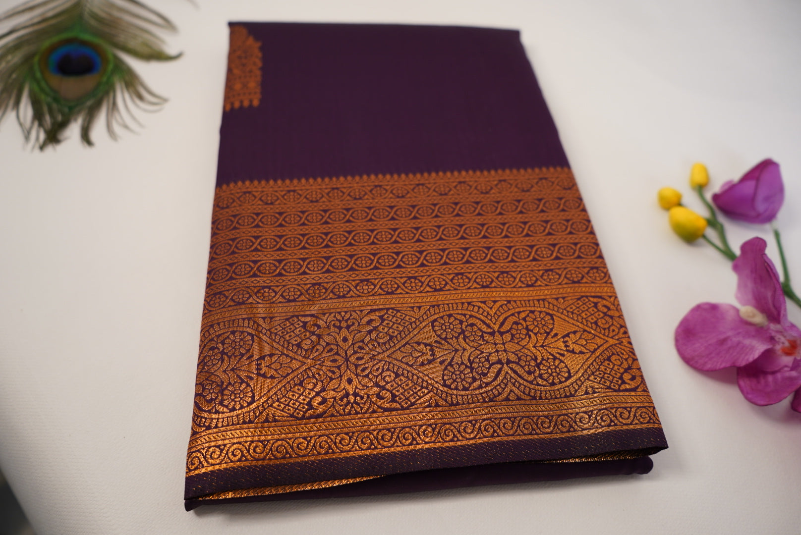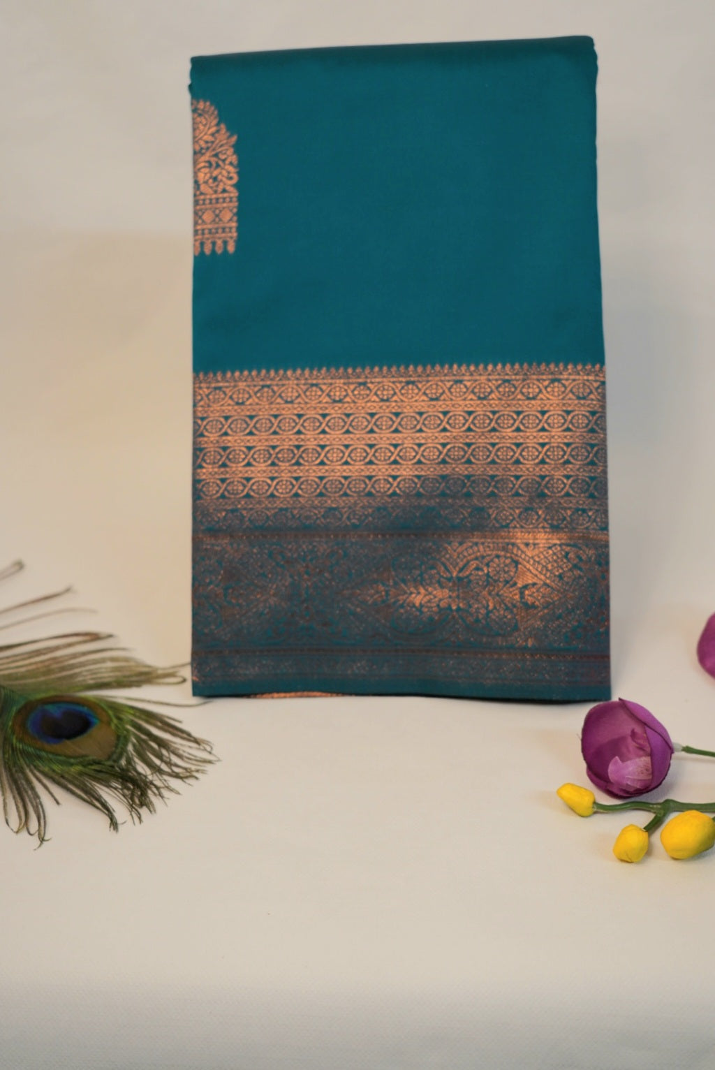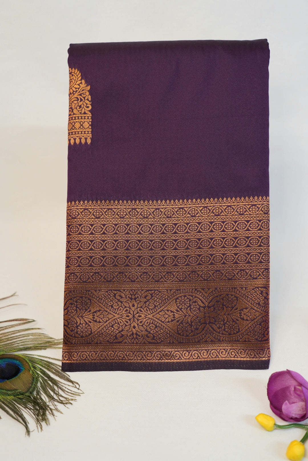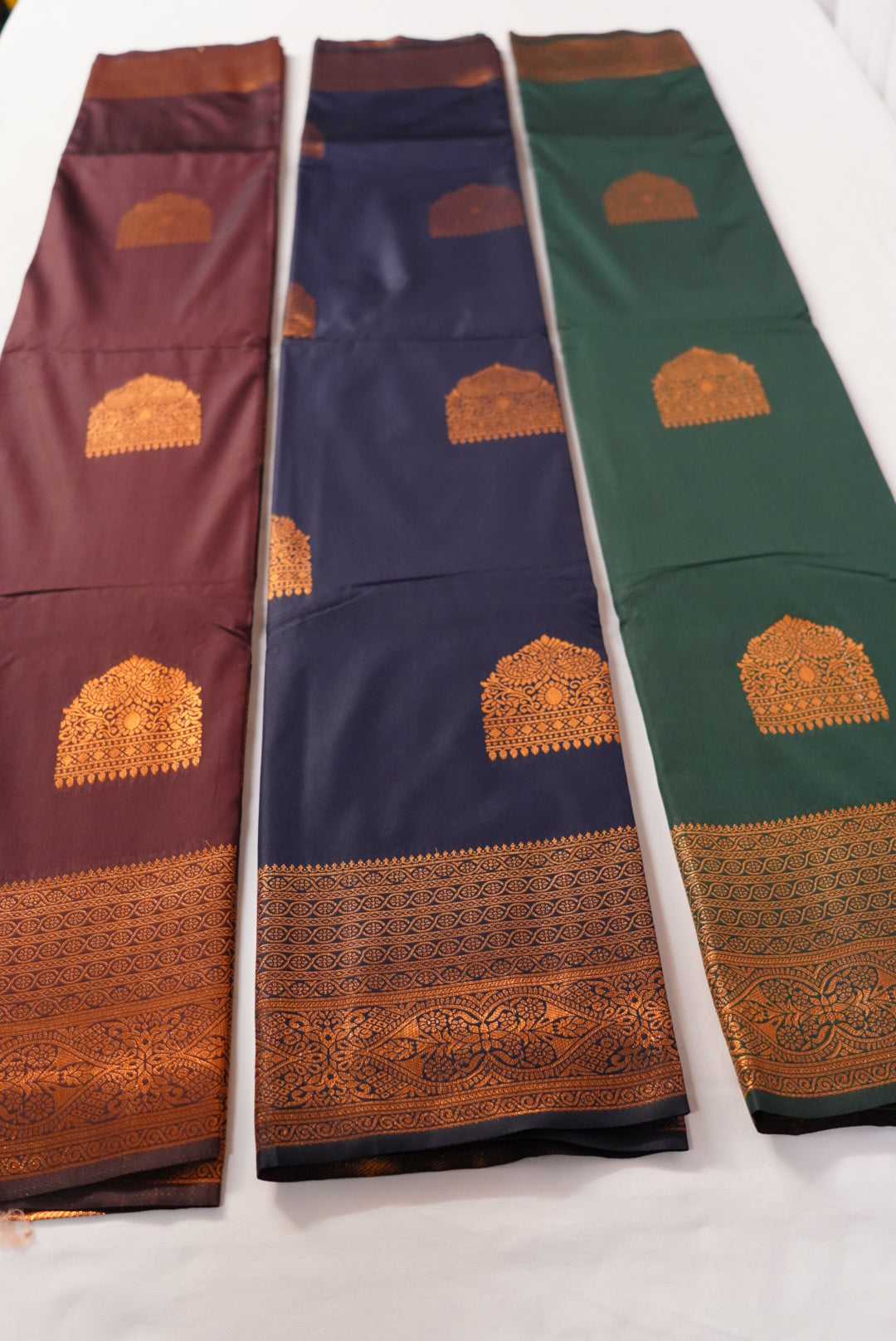 This is a stunning silk saree with a beautiful border and pallu, giving it a rich and elegant look. The saree has a beautiful golden sheen and features fine zari work woven into the borders and pallu, adding a touch of luxury. The body of the saree is kept simple yet classy, allowing the shine and texture stand out. The border features intricate golden motifs, which perfectly complements the bright body. The pallu has gold design, making it look graceful when draped. This saree is ideal for festivals, weddings and special occasions, as it combines rich colors, fine silk, and detailed craftsmanship for a timeless and royal appearance.